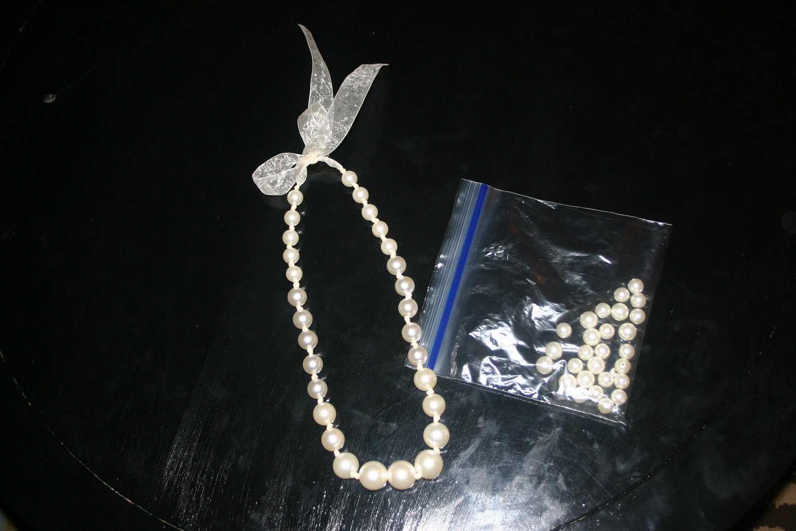 Bought a necklace on sale, it was a bit too big but it was only held all together by ribbon tied in knots, for some reason I thought I could untie the knots and take some beads out. Ha, ha, don't know what I was thinking the knots were pretty tight, ended up cutting it up and getting some new ribbon and making a shorter necklace. I'm very pleased with the end result, plus added bonus I can used the leftover beads to make a matching bracelet...someday that is ;)